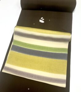 染帯の方が新作になります。制作はフジモト。横段ぼかしの九寸なごや帯です。