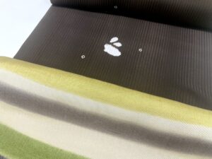 滋賀県で細々と織られている郷野紬を染下地に採用しています。フジモトさんがこの郷野紬と出会う前は、主に紬素材は小千谷のものを使っていました。では、この郷野紬との違いはどこかと問われると、本当に微差なんですが滋味というか、染の味わいなんですね。説明にもなっていなくて恐縮ですが、より深い染め味が表現できるということだと思います。今まで数を見させてもらってきて、私にもその辺りの感覚が少しずつ分かるようになってきました。