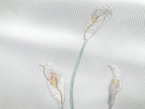 カラーの花を表した一品。刺繍ならではの立体感と、優しい色表現が美しいです。