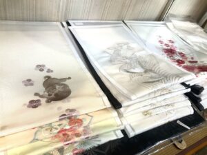 気がつくと薄くなっている刺繍半衿も、重め軽め、素材も絹と合繊それぞれ数多く揃えました。なかなか見応えがある品揃えになっています。