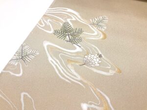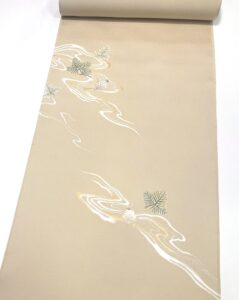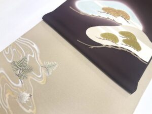 帯合わせは、同じくフジモト制作で同じく松をモチーフにした染九寸帯で。柄名は「金泥松」