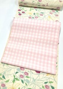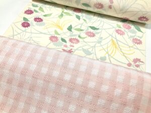 まさに春を感じさせる明るい色合い。花織では珍しいとも言えるこの色に魅力を感じて、昨年末に仕入れてみたものです。