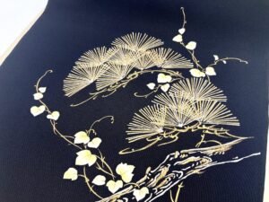 琳派の川勝らしいこの帯を当店に迎え入れた記念に、こちらで取り上げてみました。金描きを多用し、刺繍のあしらいを加えた京友禅の王道的な作りの一品です。