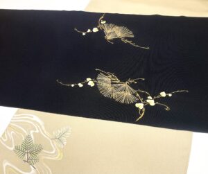 こちらハラ文。染のなごや帯とは言え、十分に重みのある組み合わせになりました。もうその季節は過ぎてしまいましたが、新年会などで映える感覚ですよね。もちろん、季節問わずに着用いただけますが。